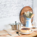 18/10 rostfritt stål I spegelfinish. Det rostfria materialet är putsat med lera vilket ger ytan unika egenskaper vid rengöring.