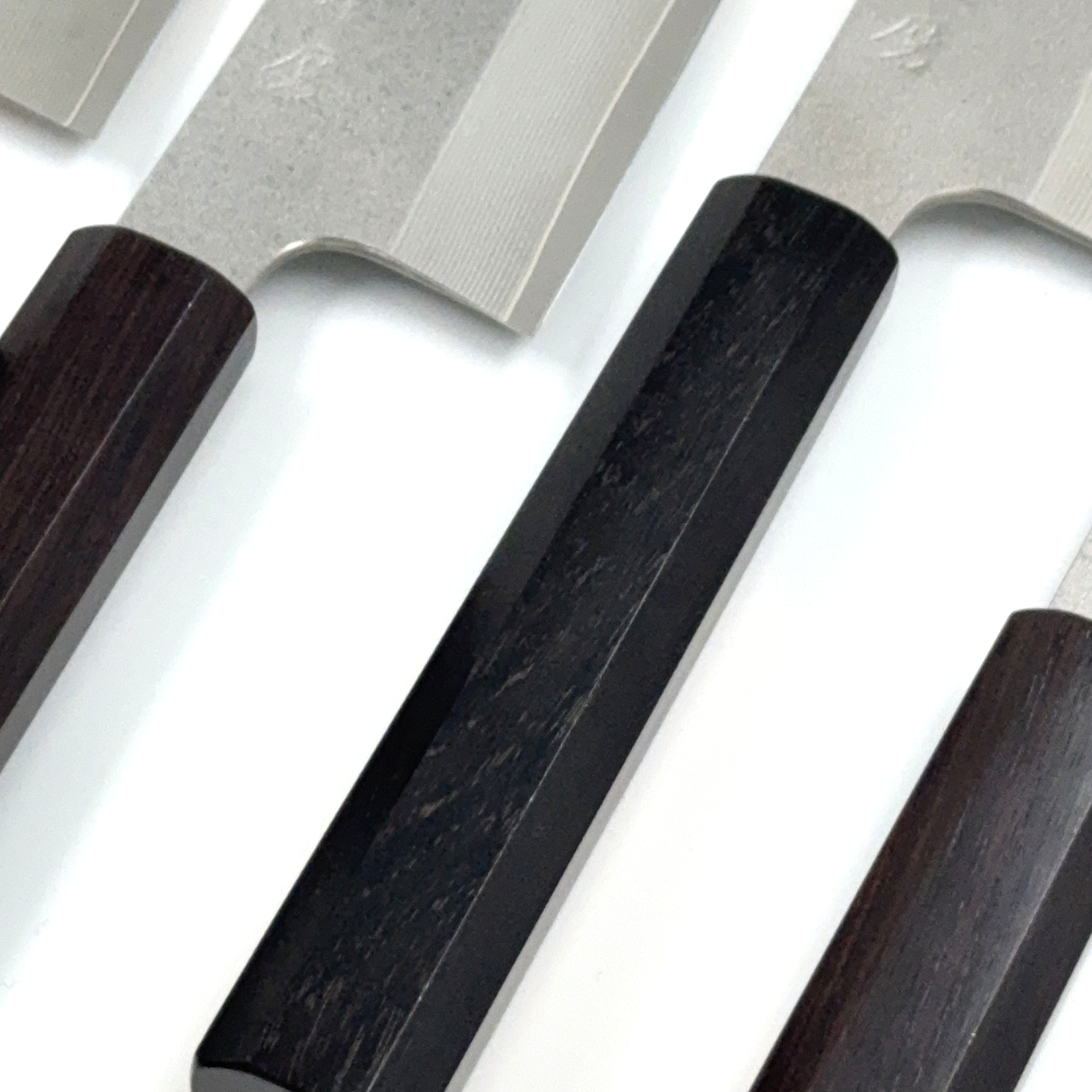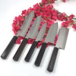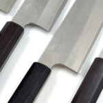 Den unga smeden Aki Furukawa står bakom denna kniv smidd i damascusteknik. Stålet Aki san har arbetat med i kärnan är ett Cobolt rosfritt stål med arbetsnamnet DS. Aki har valt ett stål till denna kniv samt en konstruktion som gör kniven anpassad för den västerländska skärtekniken. För att skapa en kniv med högre tålighet har Aki valt att hålla ner härdningen och hårdheten till 59-61 HRC. Det tillsammans med en något tjockare profil gör denna kniv till en arbetshäst. Aki har gjort sin läxa och lyssnat på den europeiska användaren som ofta tycker att det japanska smidet kan tyckas för lätt, så denna kniv har lite mer vikt.