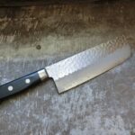 Tre lagers kniv i Tsuchime finish. Galet vass kniv från en av de bästa, Hokiyama-san. Kärnan är i AUS10 som har en hög kolhalt. Bladet är hamrat (Tsuchime).