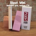 En optimal uppsättning stenar att slipa med är tre st, En grov, medium och en fin. Om ni har en sten i spannet nedan, ja då har ni det ni behöver i det segmentet. Sedan behöver ni en i varje segment, om ni vill slipa från slött till vasst. De superfina stenarna polerar mer än de slipar och är till för att ta bort repor i stålet. Med rätt teknik kan du spegel polera ett stål så att du får ett ”Kill Bill” blad.