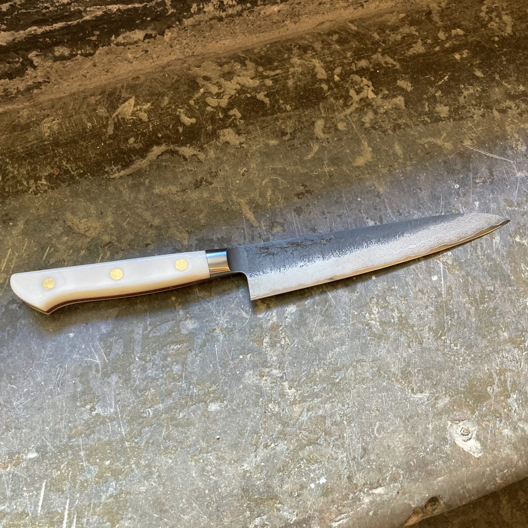 Den högsta rangen hos Tojiro är Master Blacksmith, Kida är en av få serier som smids av dessa mästare. Kida är ett damskussmide i 63 lager handhamrat stål, på alla sätt ett mästerverk. Kärnan är som ofta i VG10 och även om mycket känns igen rent teoretiskt så särskiljer detta smide sig på ett fantastiskt sätt. Generationer av kunskap är bokstavligen insmidda i stålet. Handtaget är i DuPont Corian och bladet är fäst med en s.k. fulltang och tre nitar. Det röda i handtaget är hartsbearbetat papper vilket ger de olika materialen i handtaget spelrum vid värmeväxlingar.