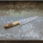 En fantastiskt vacker kniv från Saji-san. Denna modell har horn i handtaget. Hela 129 lager stål ger en kärna tunn som ett rakblad i VG10.