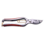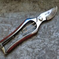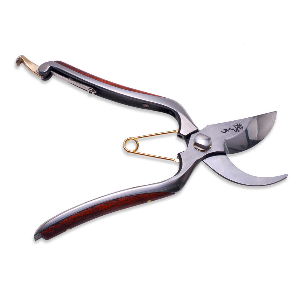 En sekatör för grenar med vackert träinslag i handtaget för ett mjukt grepp.