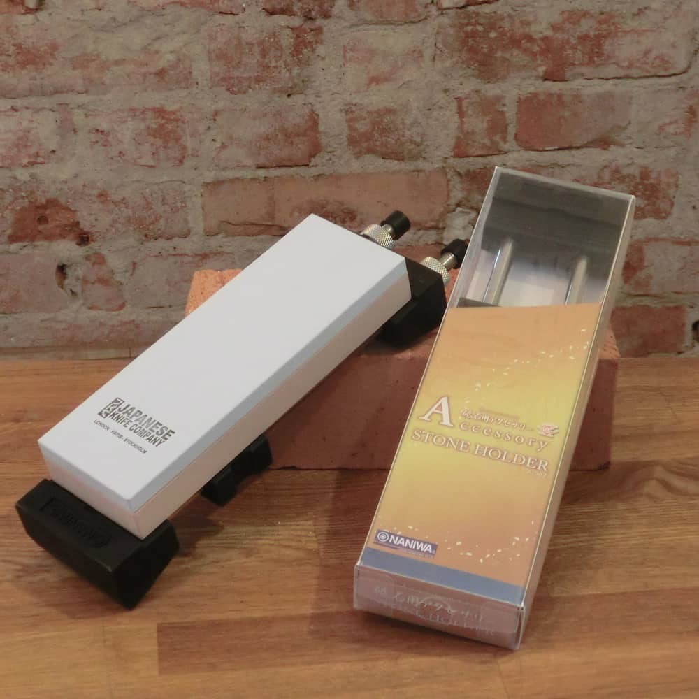 Till skillnad från andra hållare ligger denna still och glider inte på bänken. Bäst är dock en ”Hobro” då du får en slipstation anpassad efter uppgiften med vatten under stenen.