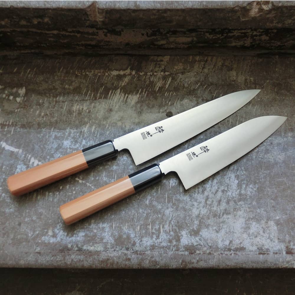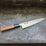 Gyoto betyder kockkniv på Japanska, denna modell är 210 mm. Suisin honyaki är ultralätt.