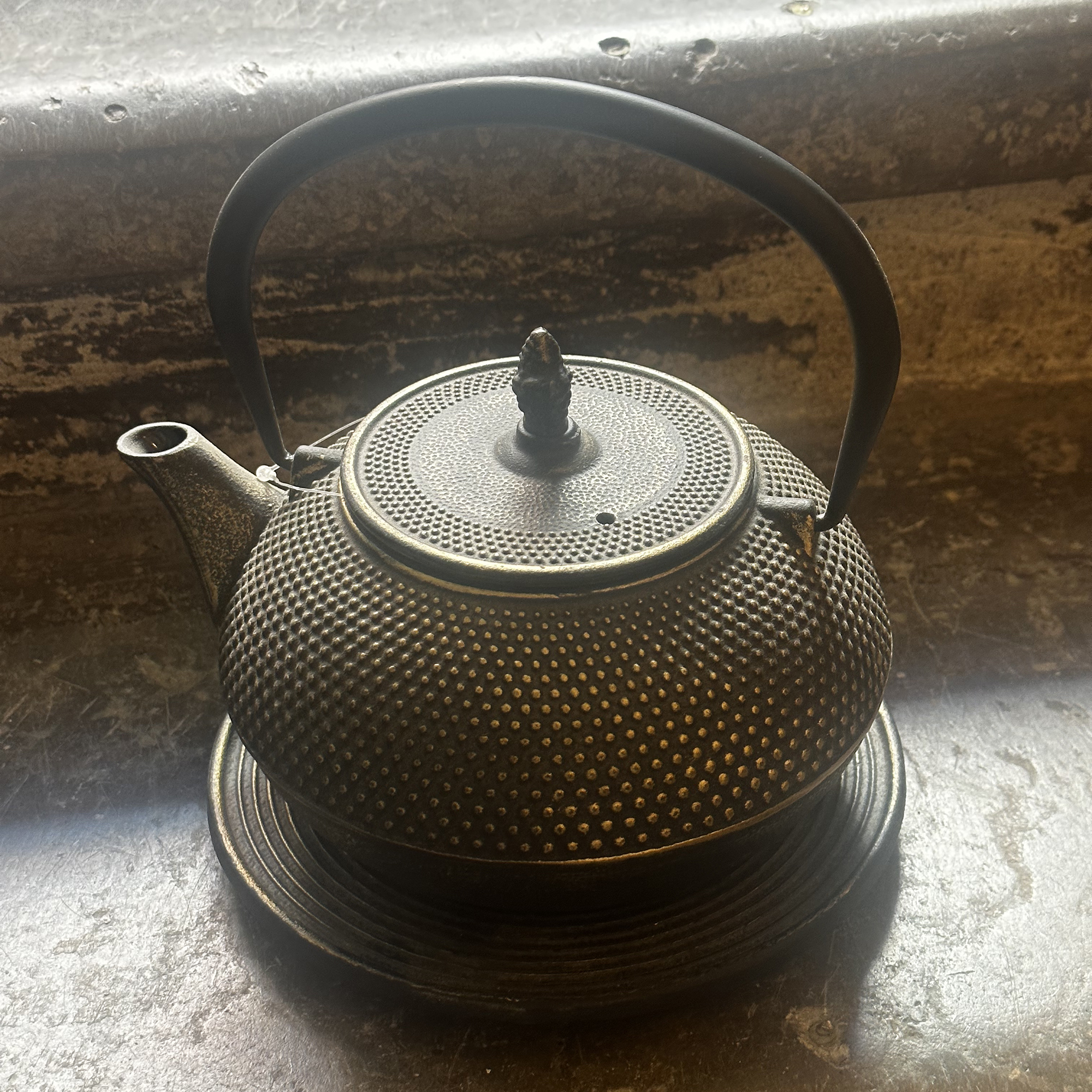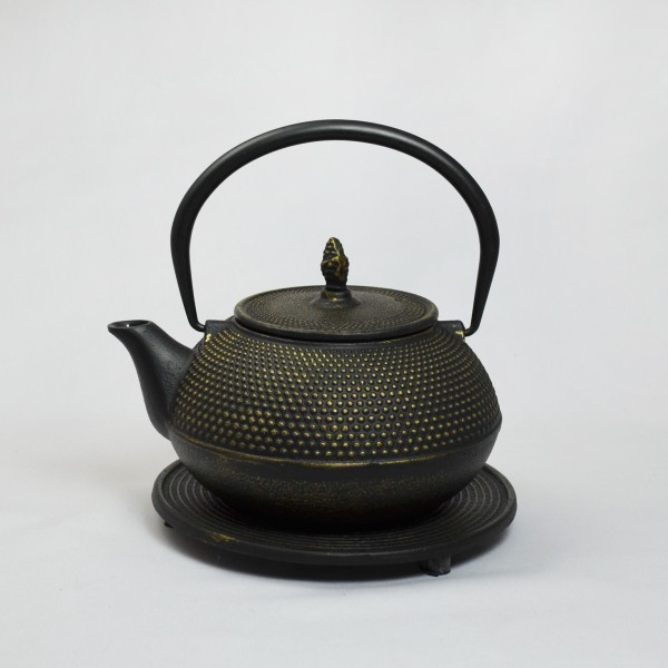 Tekanna i gjutjärn i Japansk stil. Med underlägg i järn.