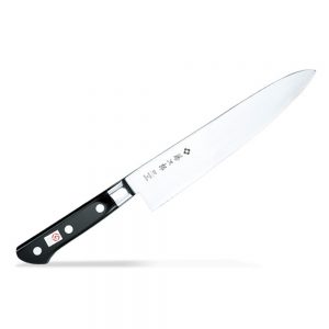 Tojiro model VG10 en riktig yrkeskniv. Toppkvalitet till ett pris som passar kockar där slitage måste budgeteras. Knivens kärna är i kvalitet VG10 vilket är vanligt på högkvalitetsknivar. Kniven är smidd i tre lager där det yttre är 13-chrome vilket ger ett bra motstånd till oxidering. Det är en enkel återslipning med den tunna kärnan som är härdad till 60 – 62
